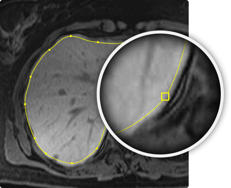 Select the target organ type and let the software automatically extract it from uploaded slices. Alternatively, you can manually segment any tissue or organ, including tumors.